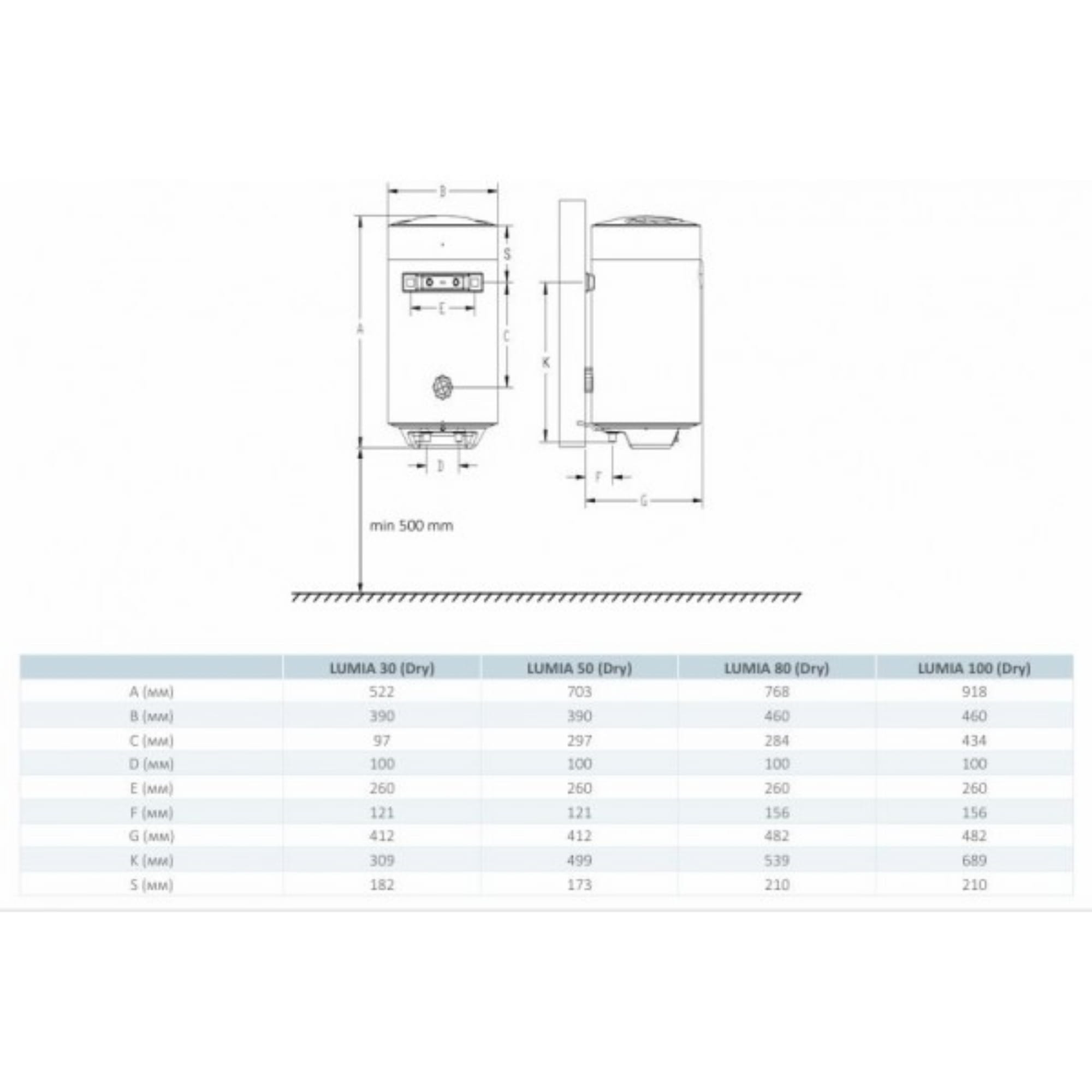 Бойлер Hi-Therm Lumia 80 л 1,5 кВт морый ТЭН, вертикальный, белый