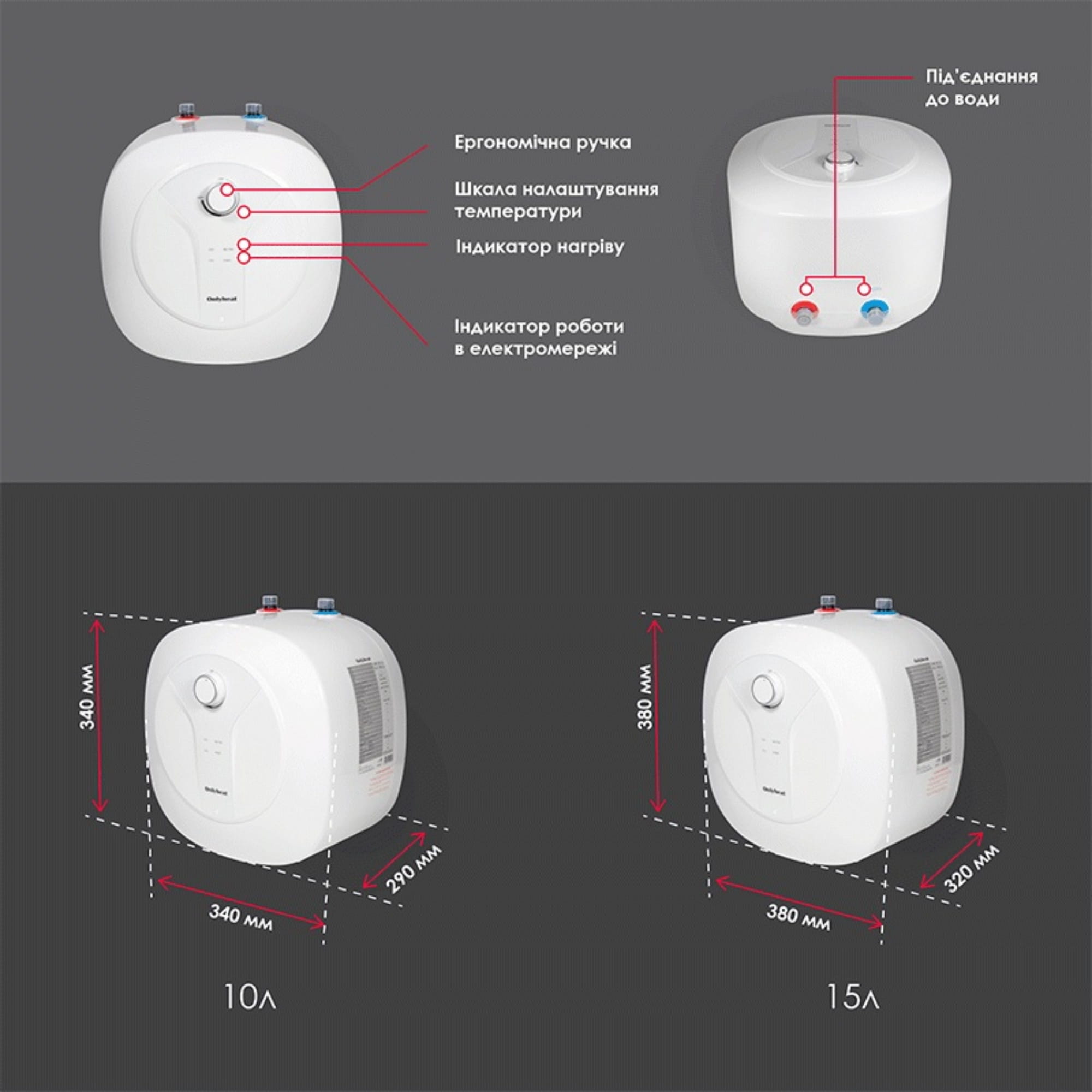 Бойлер Onlyheat D10-15RM 1,5 кВт 10л мокрый ТЭН, под мойку, белый
