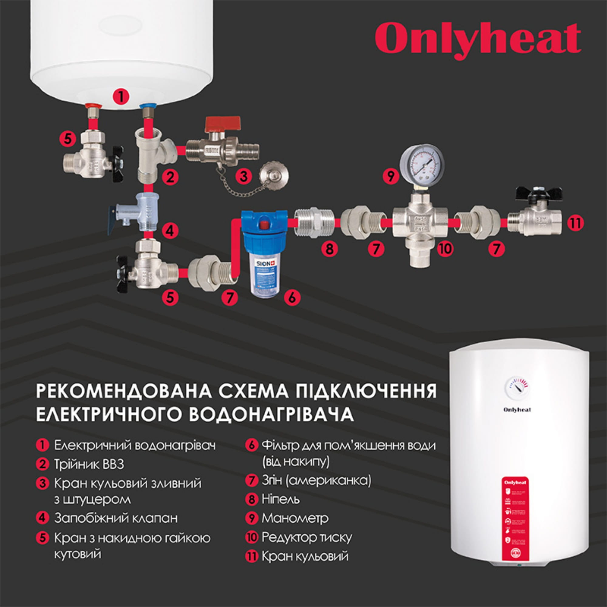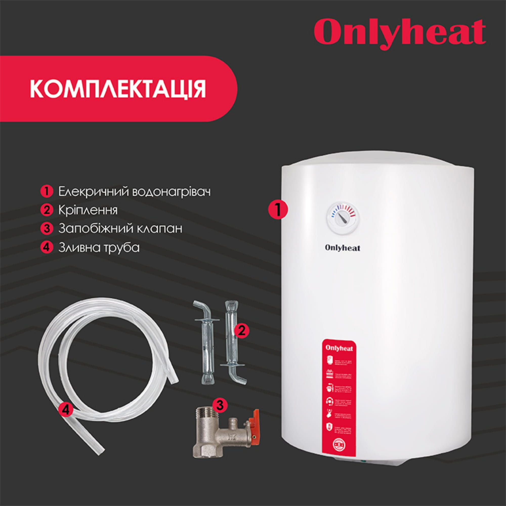 Бойлер Onlyheat RS80L(wet) 2 кВт 80 л мокрый ТЭН, вертикальный, белый