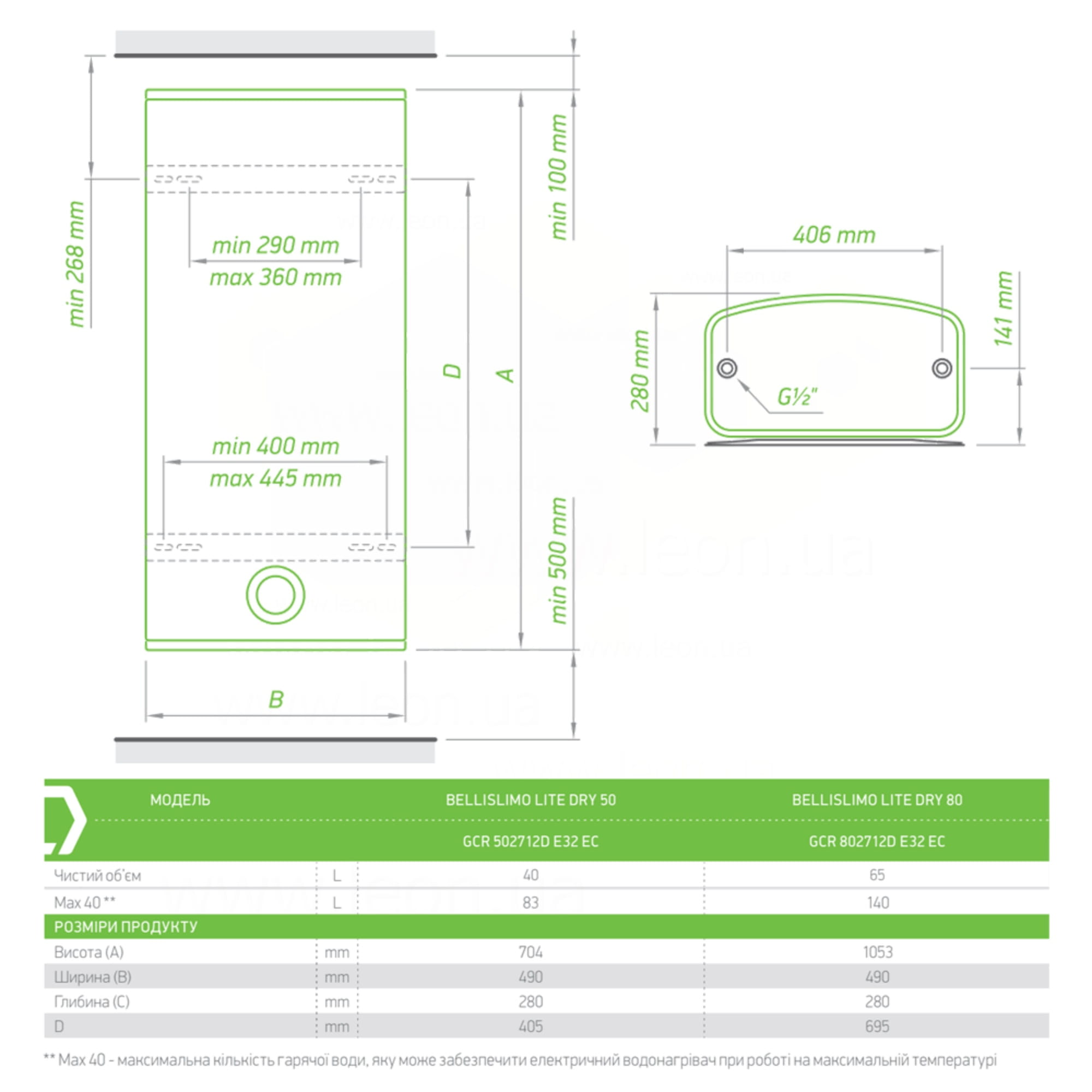 Бойлер Tesy BelliSlimo Lite DRY GCR 502712D E32 EC 50 л 1,2 кВт сухой ТЭН, универсальный, белый (306086)