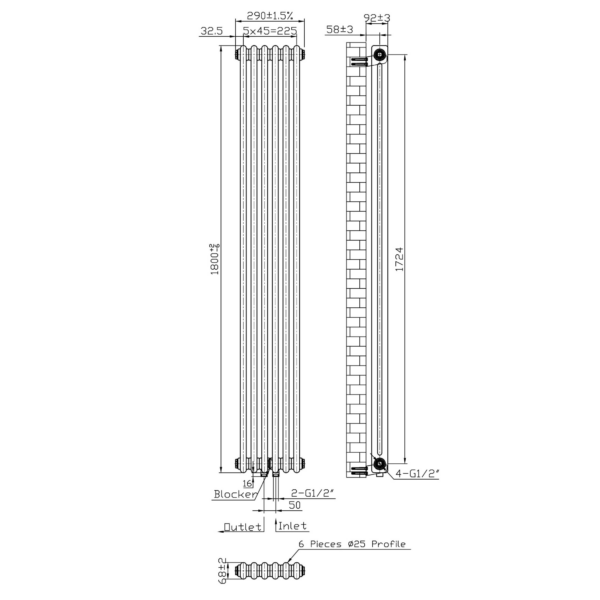 Дизайнерский радиатор Warm Well Column 2 1800×290 вертикальный, белый матовый