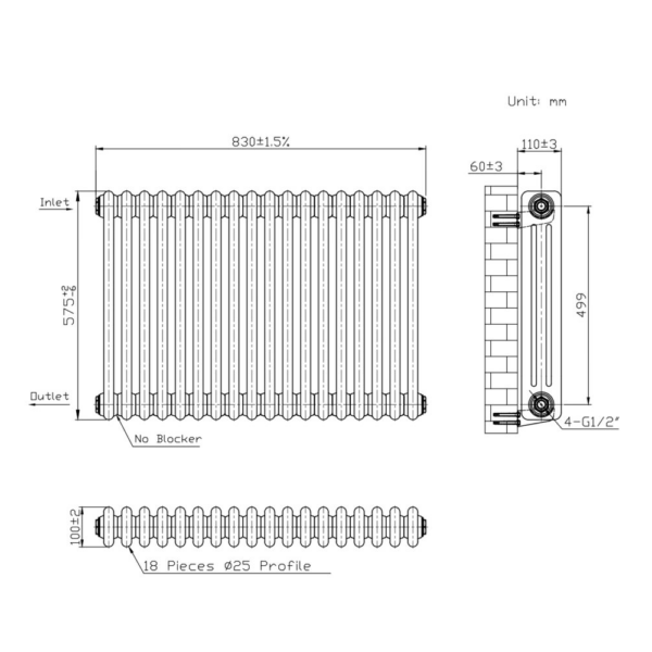 Высота радиатора, мм | 575 |