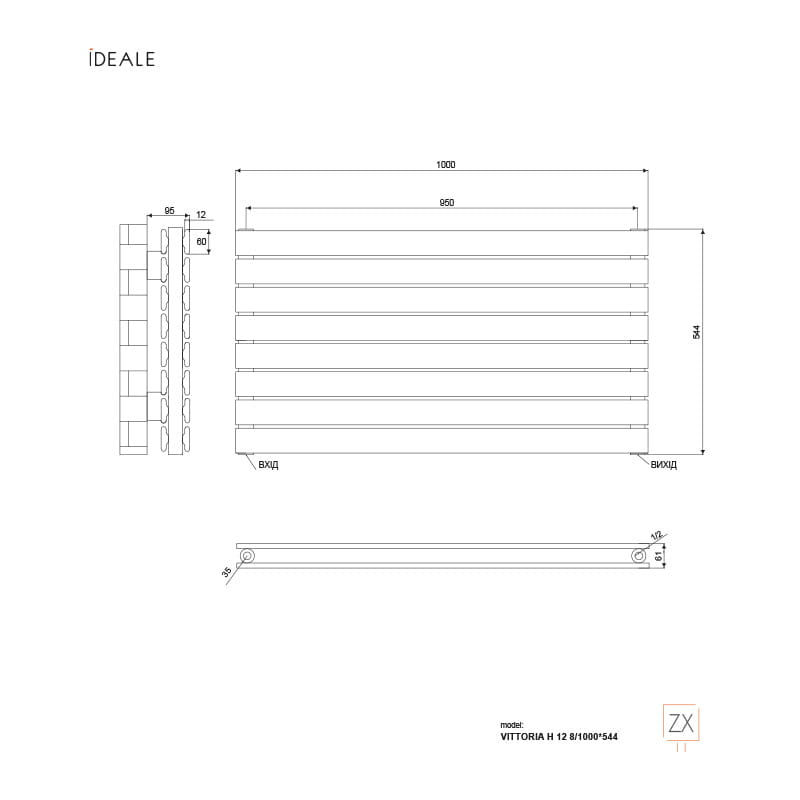 Дизайнерский радиатор IDEALE Vittoria H 12 544×1000 горизонтальный, черный матовый