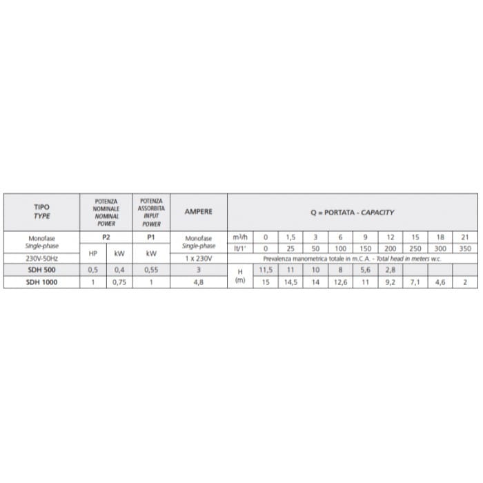 Дренажный насос Speroni SDH 1000 0,75 кВт H 15 м Q 350 л/мин с поплавком