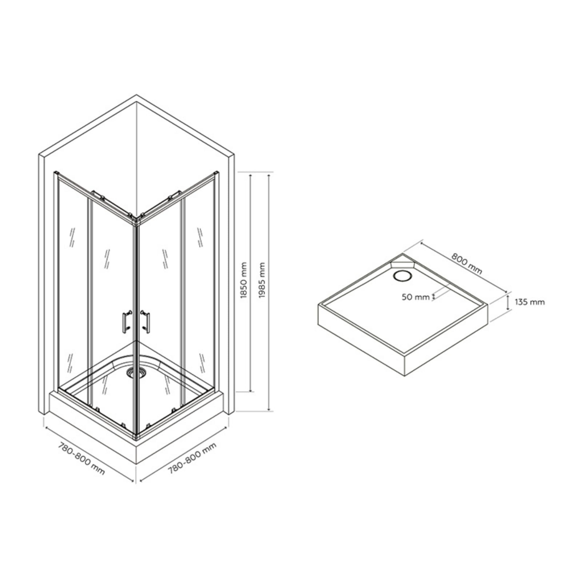 | Комплектация | Вертикальный профиль (2 шт), Горизонтальный профиль (2 шт), Водозащитный уплотнитель (4 шт), Магнитный уплотнитель (2 шт), Поддон размером 80х80 см (1 шт), Сифон под поддон (1 шт), Стеклянные двери (2 шт), Ручки для стеклянных дверей (2 шт), Двойные ролики для стеклянных дверей (2 пары), Стеклянные передние стенки (2 шт) |