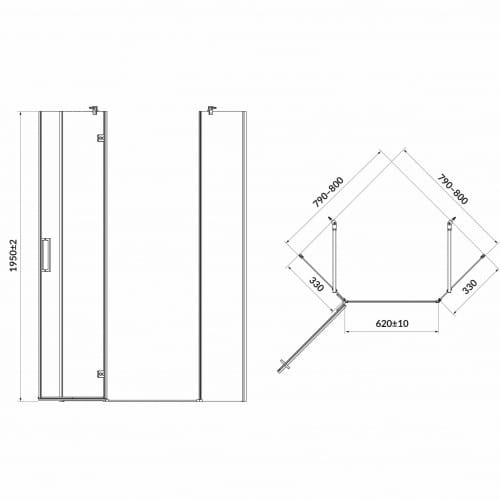 Душевая кабина Cersanit Jota 195x80x80 стекло 6 мм, без поддона, хром (S160-009)