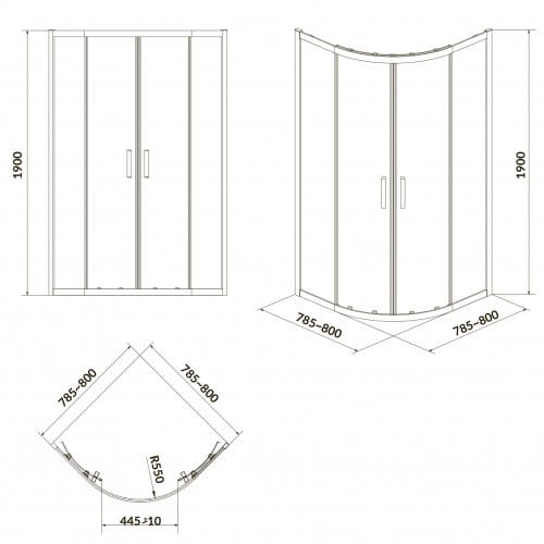 | Форма душевой кабины | Четверть круга |