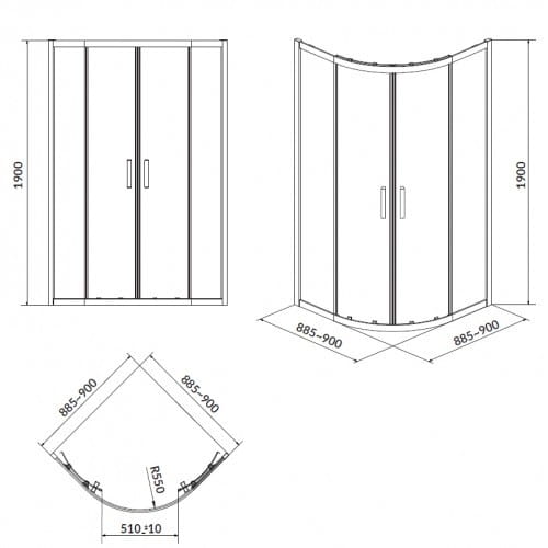 | Форма душевой кабины | Четверть круга |