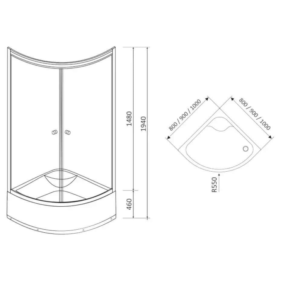 | Форма душевой кабины | Четверть круга |