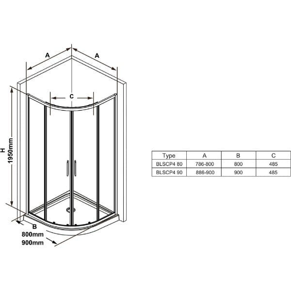 | Форма душевой кабины | Четверть круга |
