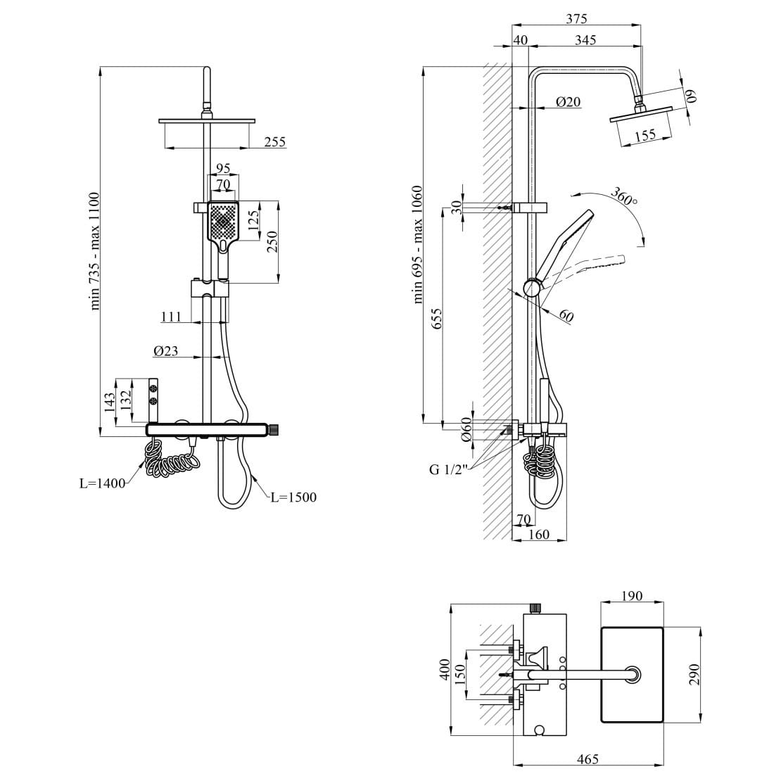 | Длина кронштейна для верхнего душа, мм | 345 |
