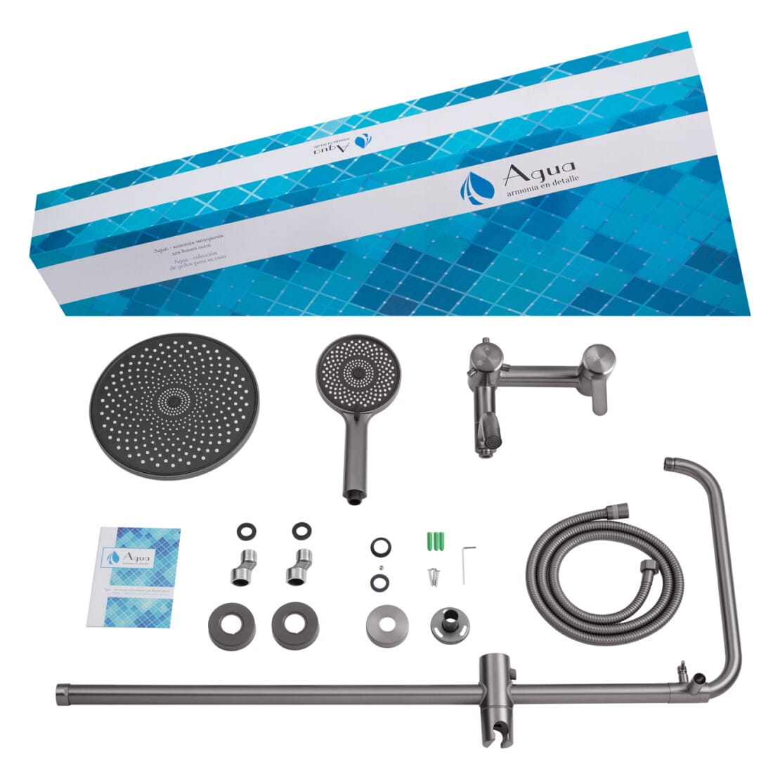 Душевая система Agua Elposo с изливом, нержавеющая сталь, графит матовая (INOX064AM)
