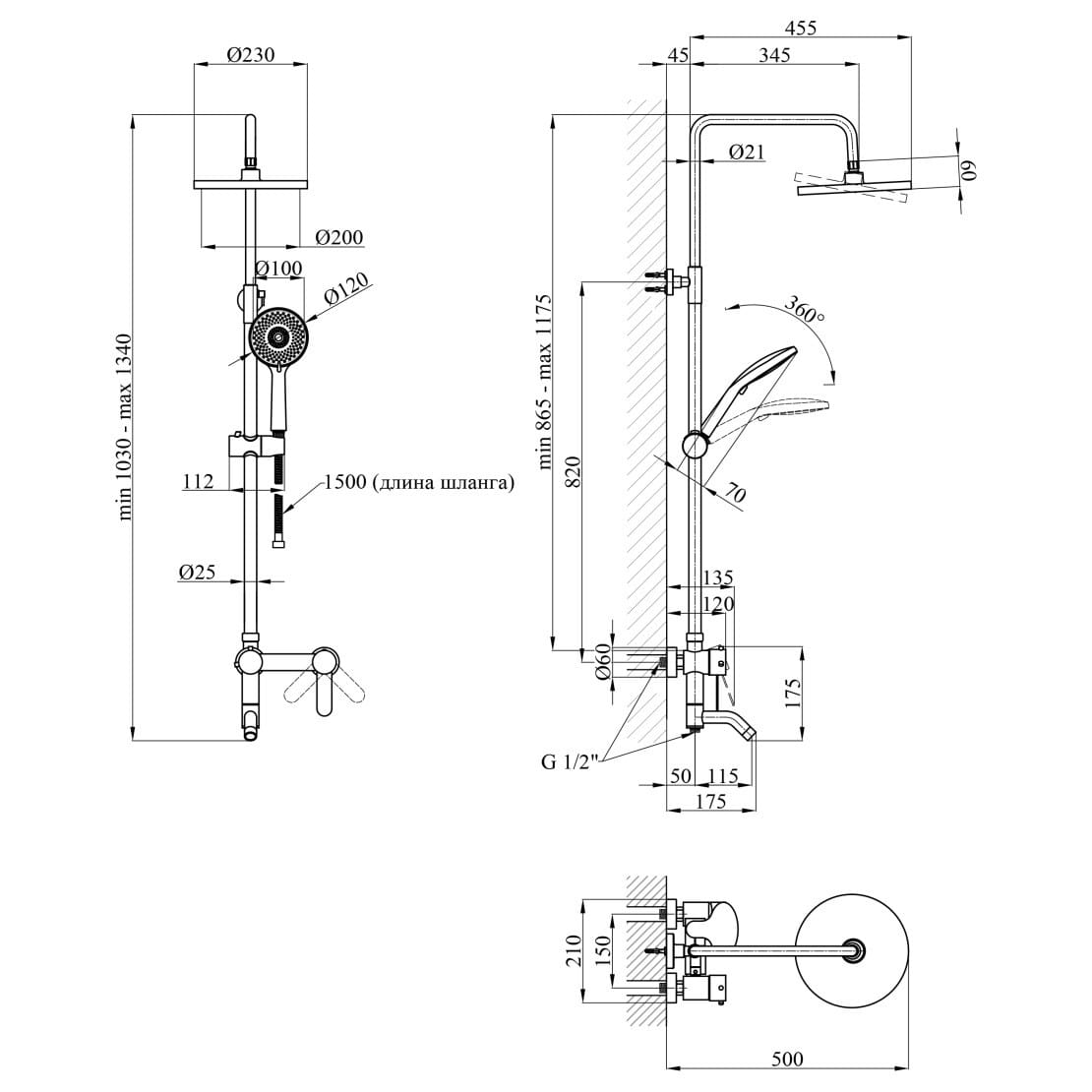 | Длина кронштейна для верхнего душа, мм | 345 |