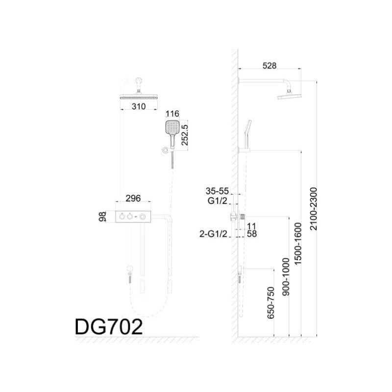 Душевая система AIM DG702 скрытого монтажа, латунь, хром