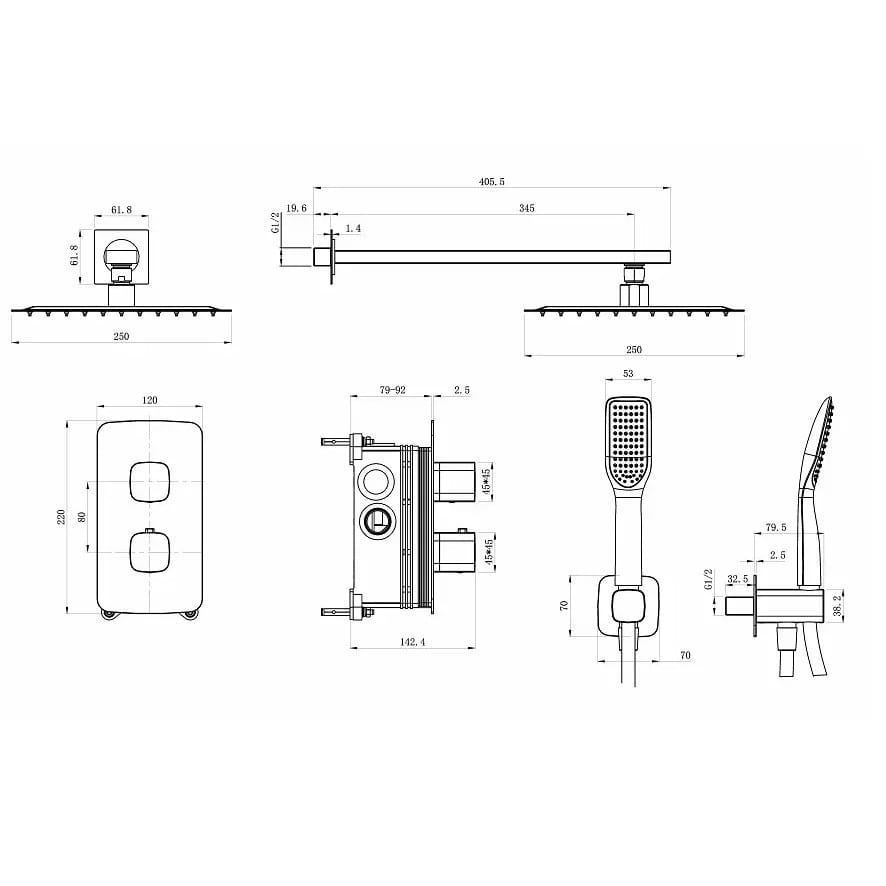 | Длина кронштейна для верхнего душа, мм | 405,5 |