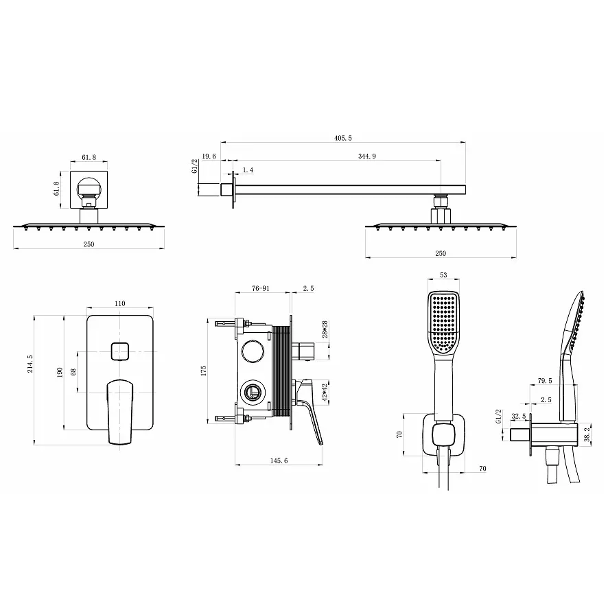| Длина кронштейна для верхнего душа, мм | 405,5 |