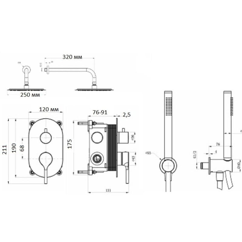 | Длина кронштейна для верхнего душа, мм | 320 |