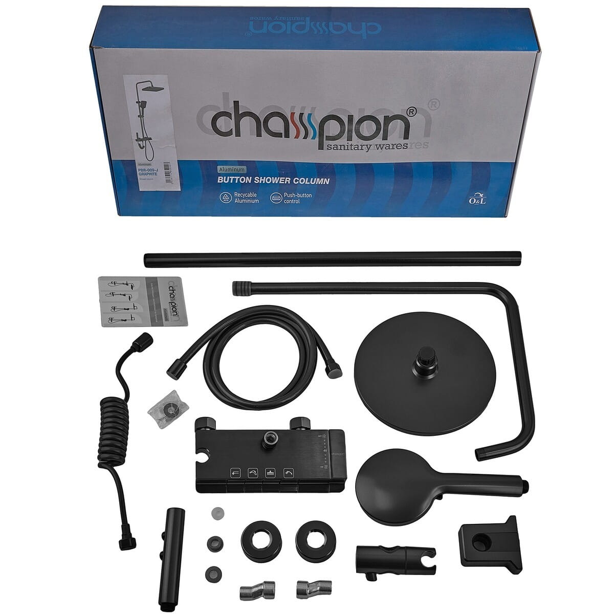 Душевая система Champion PBD-009-J с гигиеническим душем, алюминий, черный матовый (CH6549)
