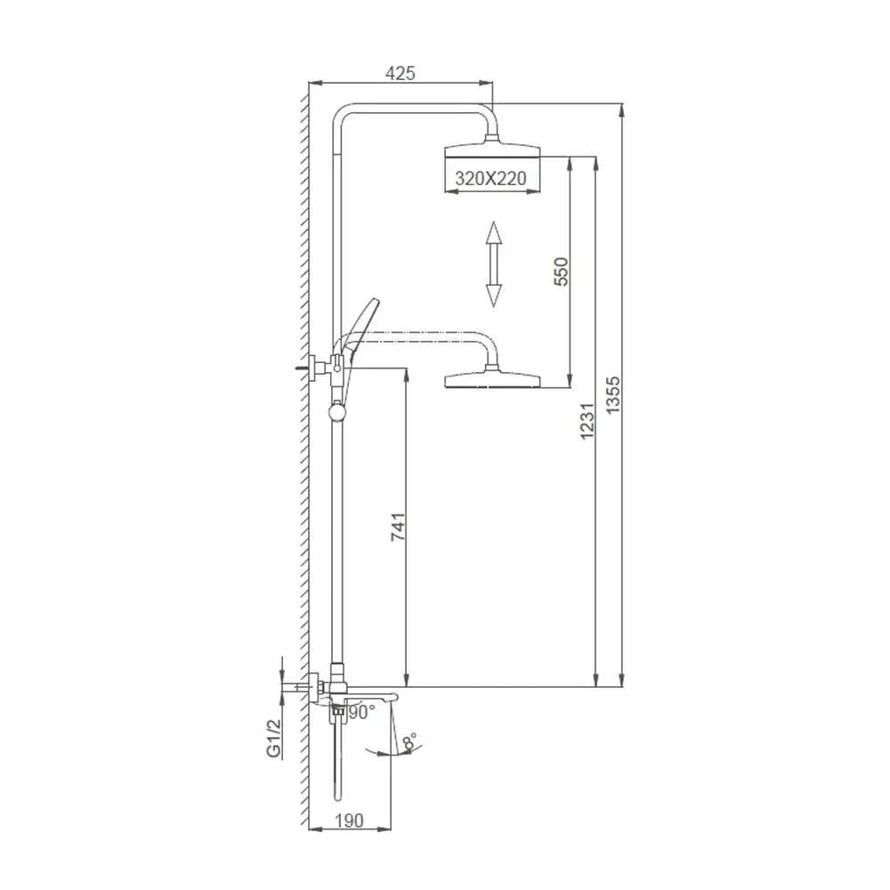 | Длина кронштейна для верхнего душа, мм | 425 |