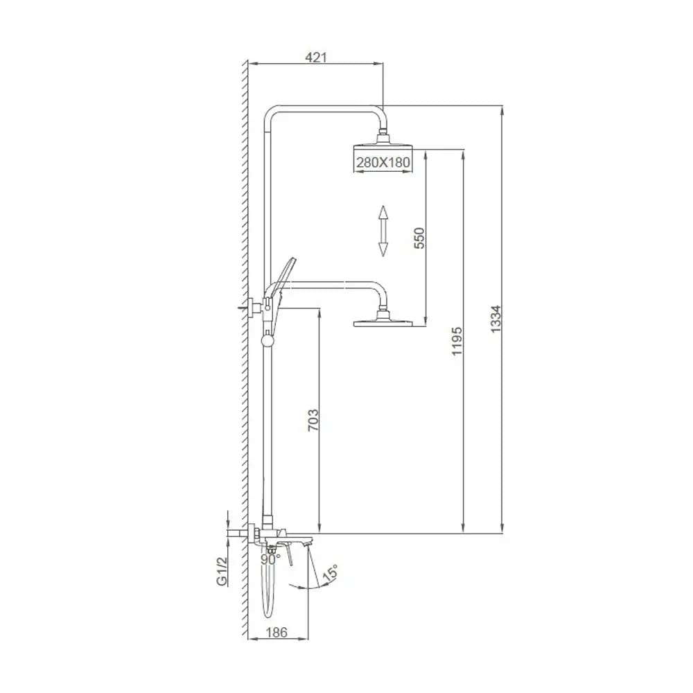 | Длина кронштейна для верхнего душа, мм | 421 |