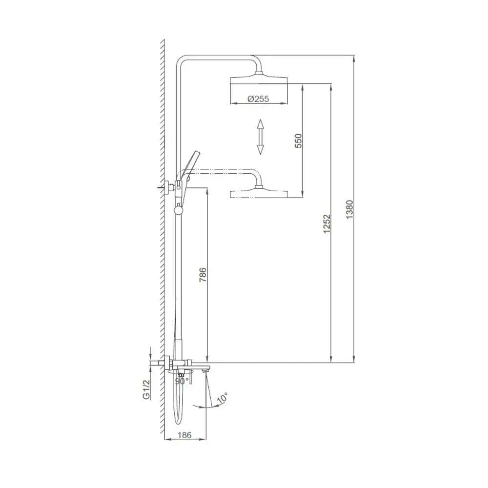 | Диаметр верхнего душа | 255 мм |