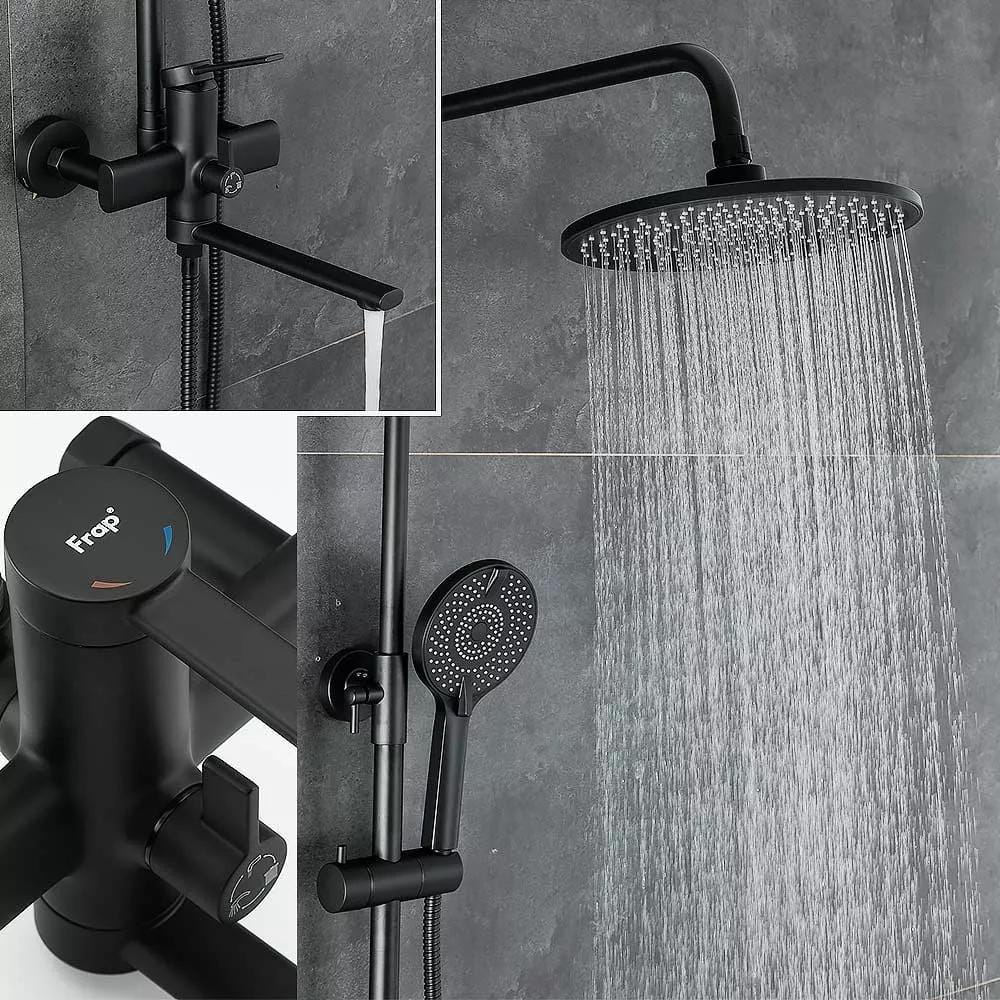 Душевая система Frap с изливом, латунь, черная матовая (F2467-6)