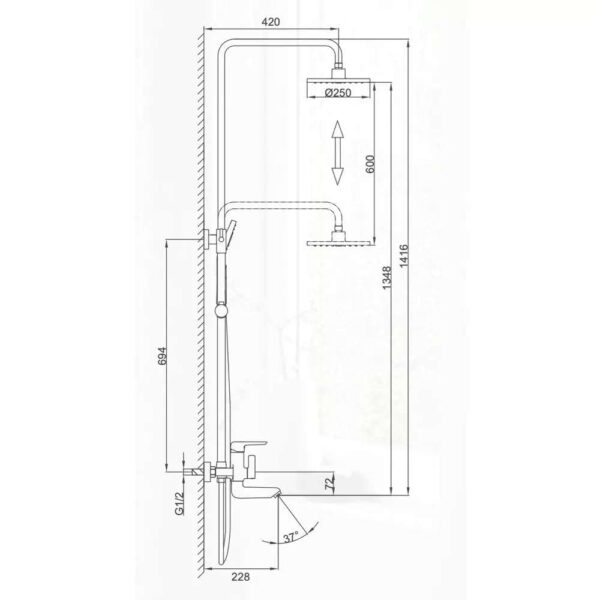 Диаметр верхнего душа | 250х250 мм |