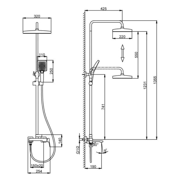 Диаметр верхнего душа | 320×220 мм |