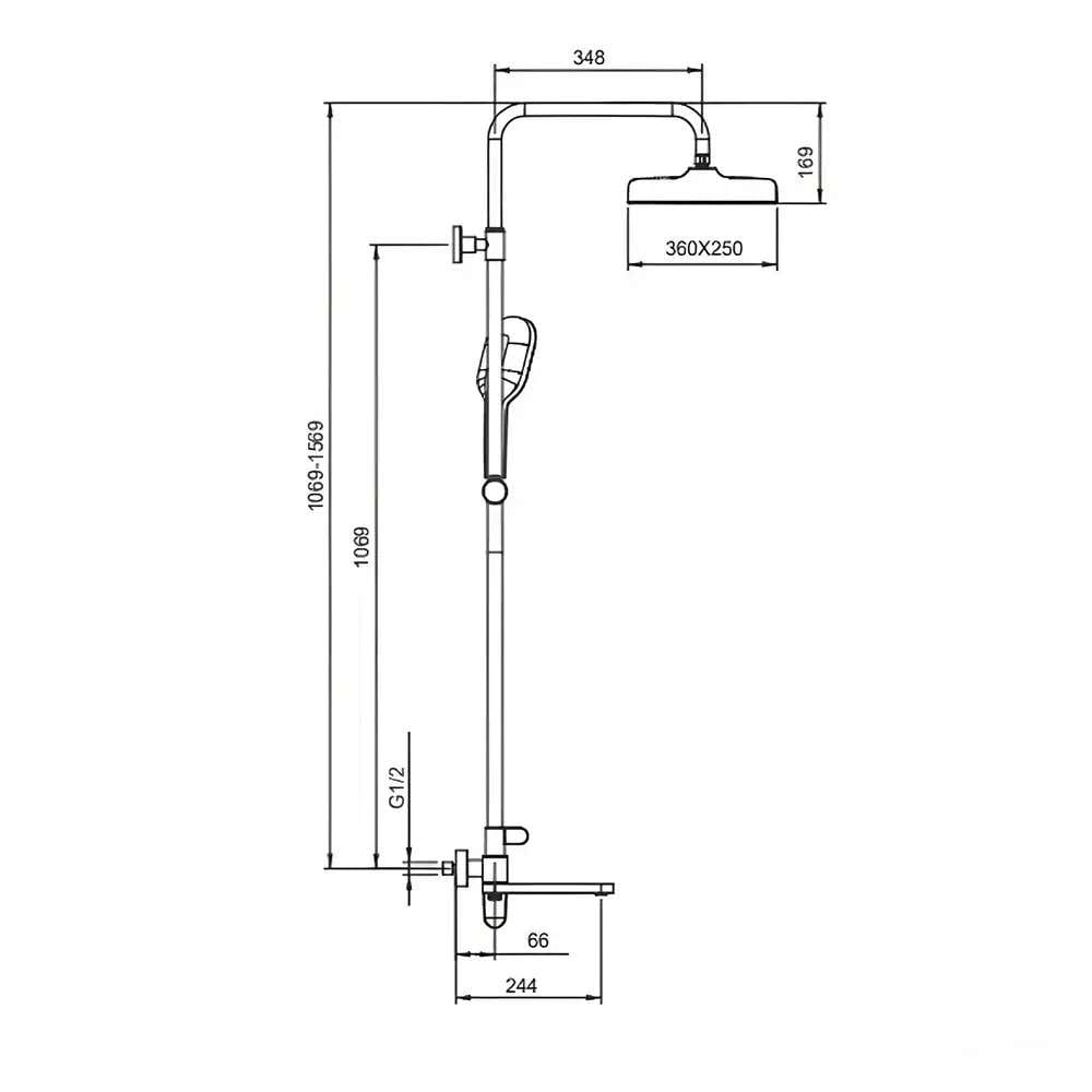 | Длина кронштейна для верхнего душа, мм | 348 |