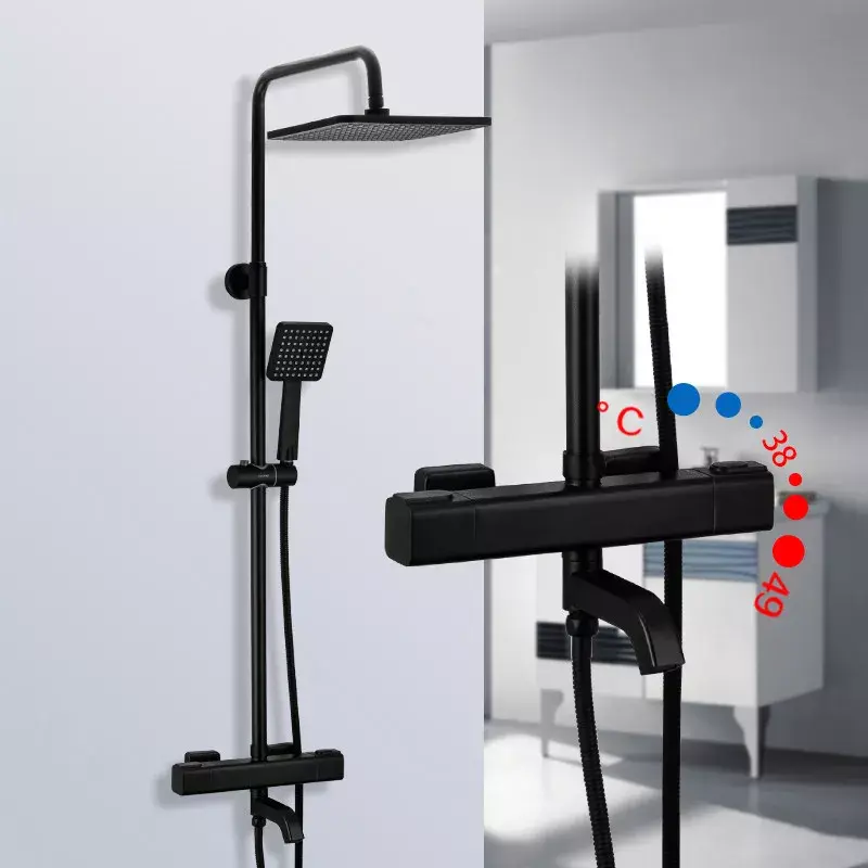 Душевая система Gappo с термостатом, латунь, черный матовый (G2491-6)