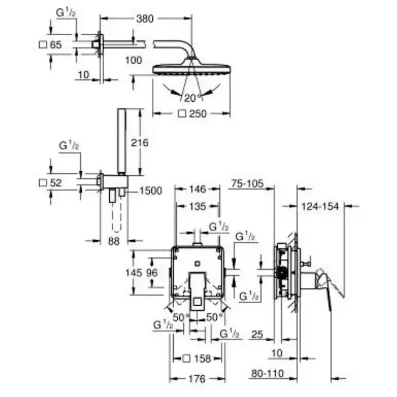 Душевая система Grohe Eurocube без излива, латунь, хром (25289000)