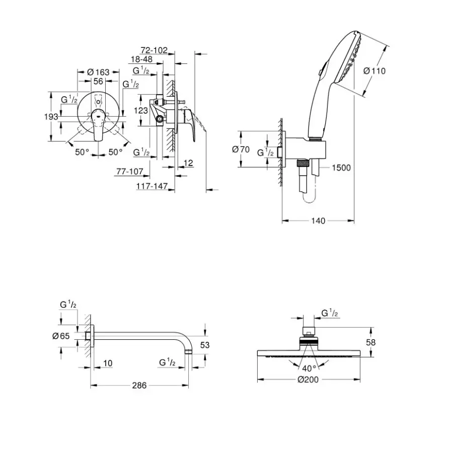 | Диаметр верхнего душа | 200 мм |