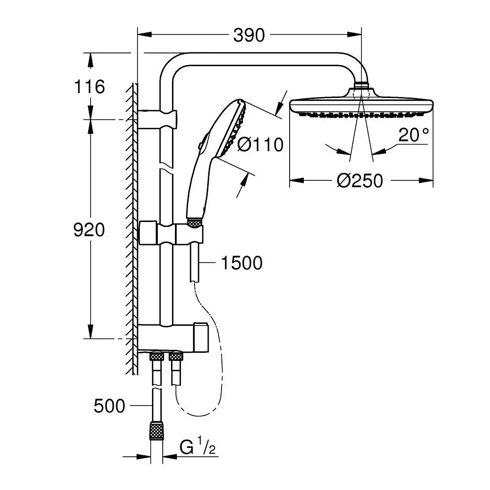 Душевая система Grohe Tempesta System 250 без излива, металл, хром (26675001)