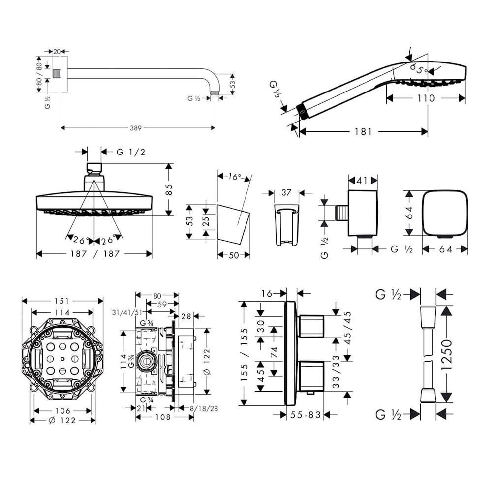 Душевая система Hansgrohe Croma Select E скрытого монтажа, латунь, хром (27294000)