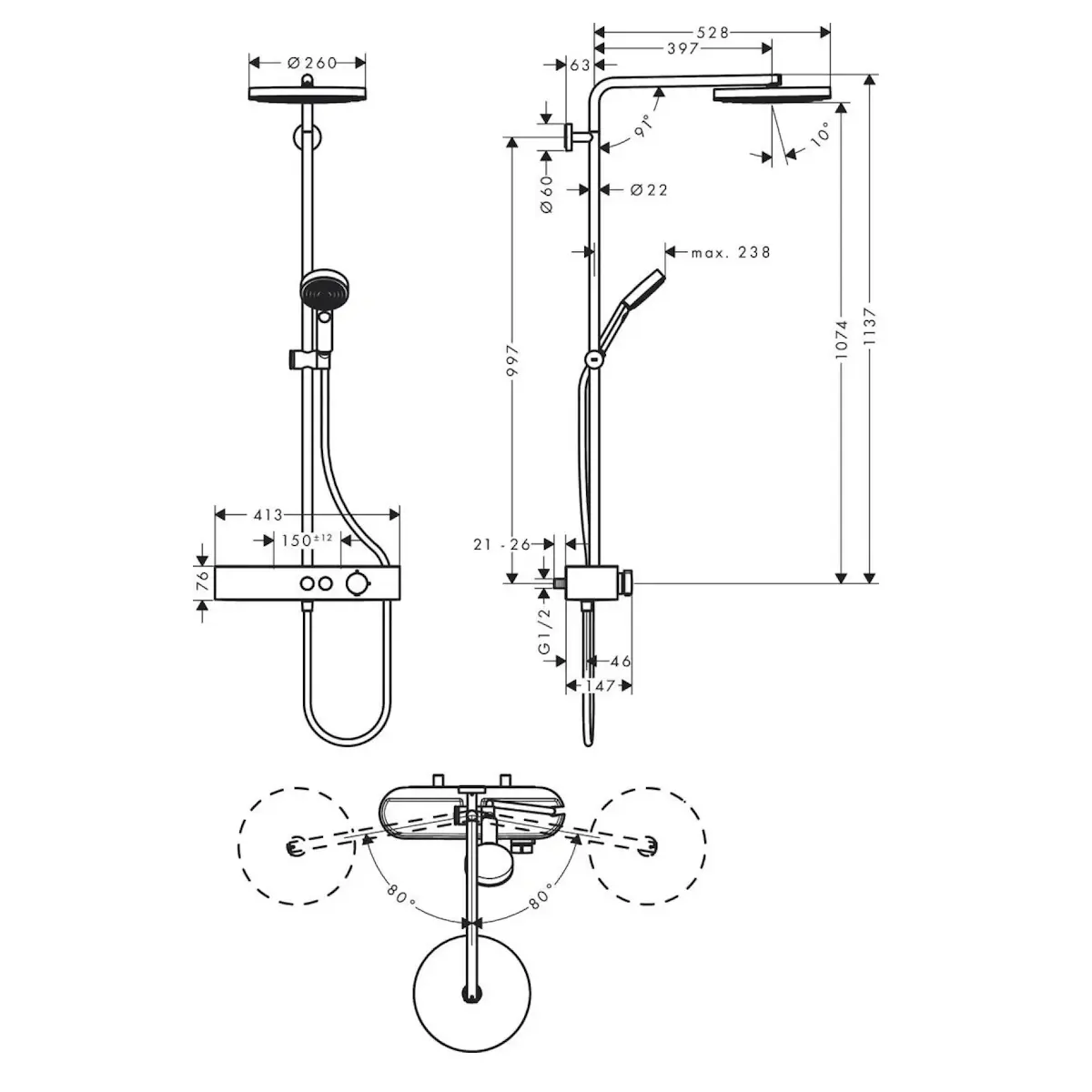 | Диаметр верхнего душа | 260 мм |