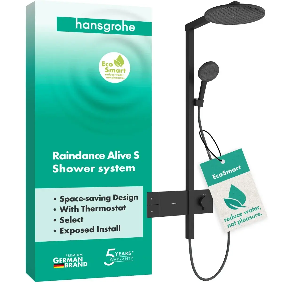 Душевая система Hansgrohe Raindance Alive S 300 1jet EcoSmart c ShowerSelect Comfort с термостатом, металл, черная матовая (24583670)