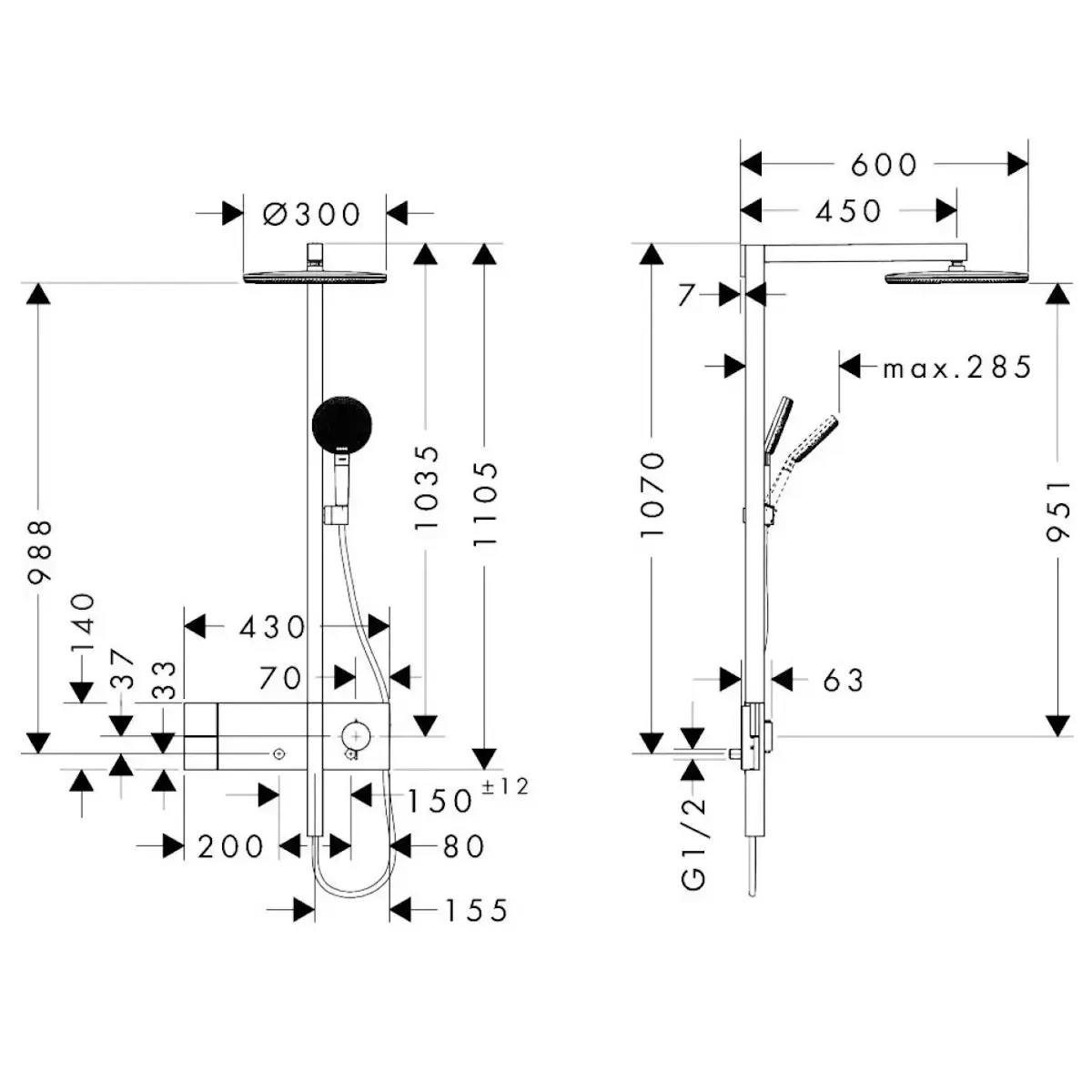 Душевая система Hansgrohe Raindance Alive S 300 1jet ShowerSelect Comfort с термостатом, латунь, хром (24582000)