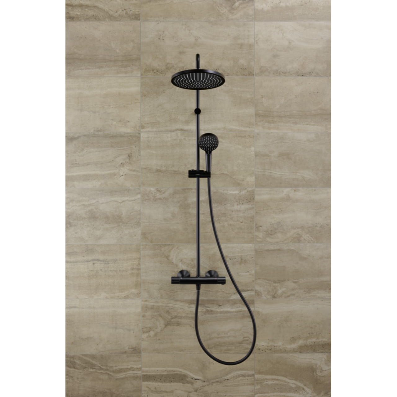 | Комплектация | Верхний душ с кронштейном, Держатель ручной лейки, Душевая лейка, Душевая стойка, Душевой шланг, Крепление, Смеситель термостатический |