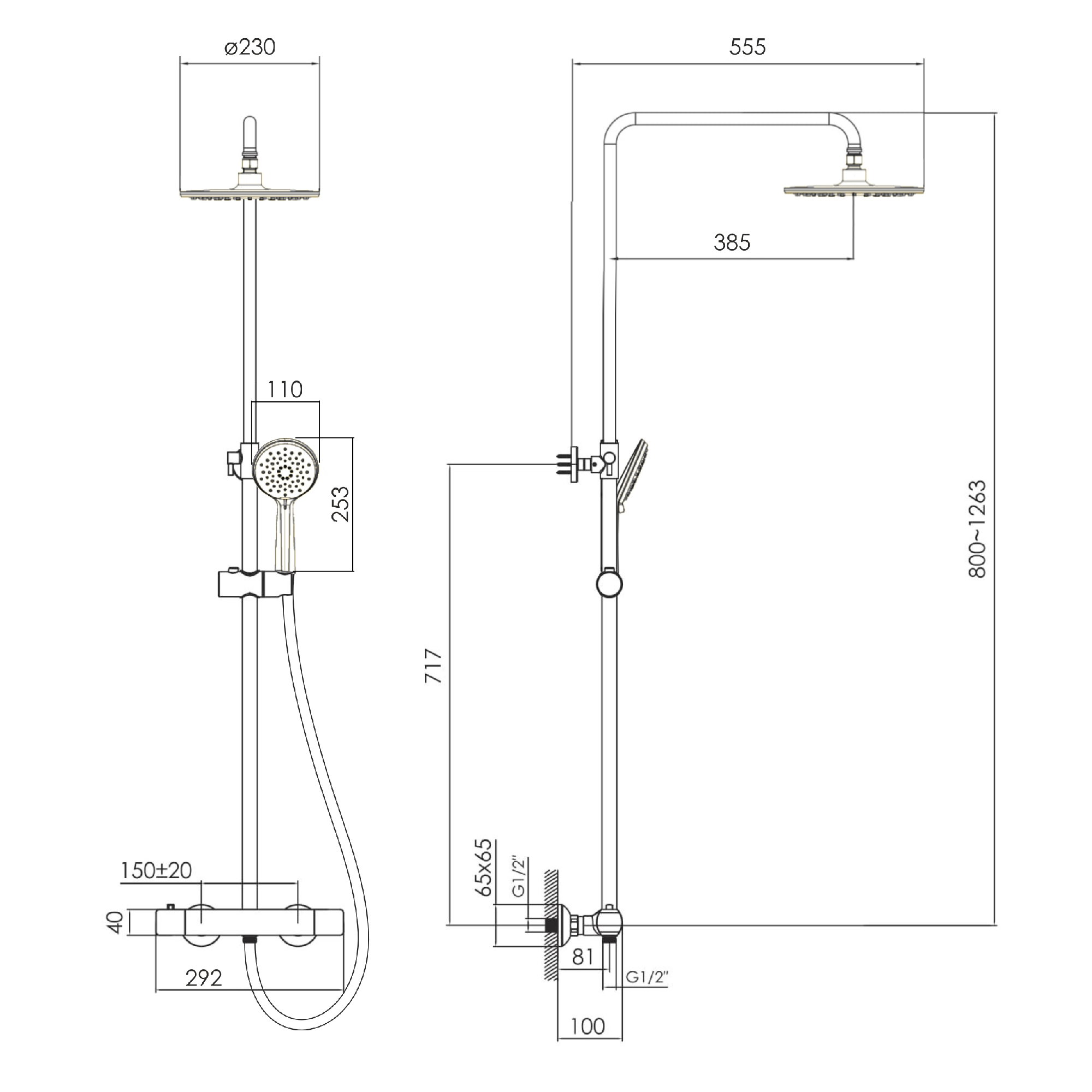 | Комплектация | Душевая система с термостатом, Шланг, Ручная лейка |