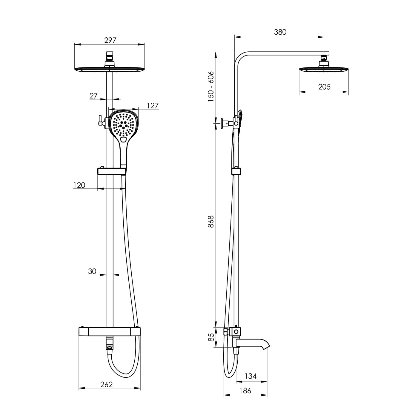 | Комплектация | Душевая система с термостатом, Шланг, Ручная лейка |