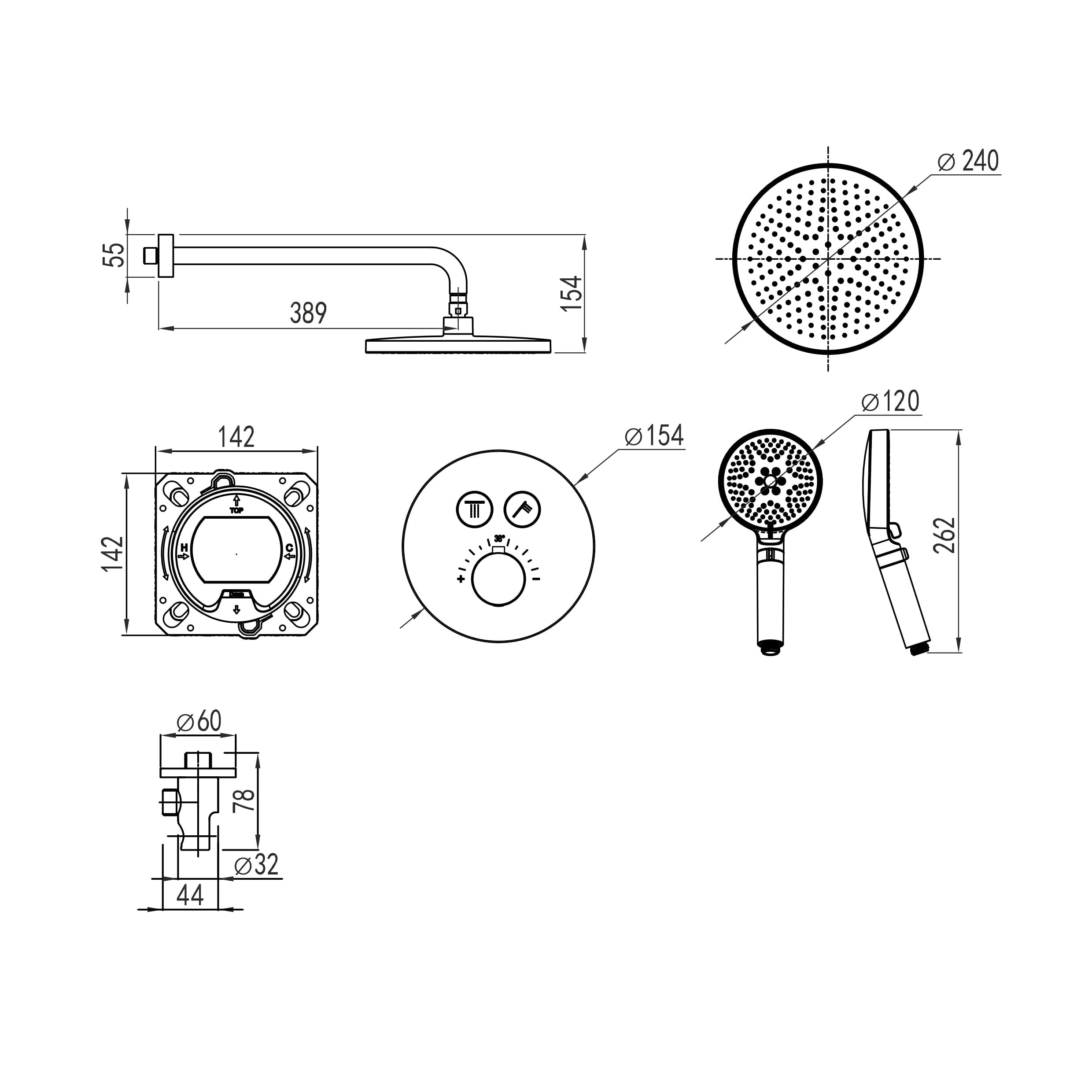 | Диаметр верхнего душа | 240 мм |