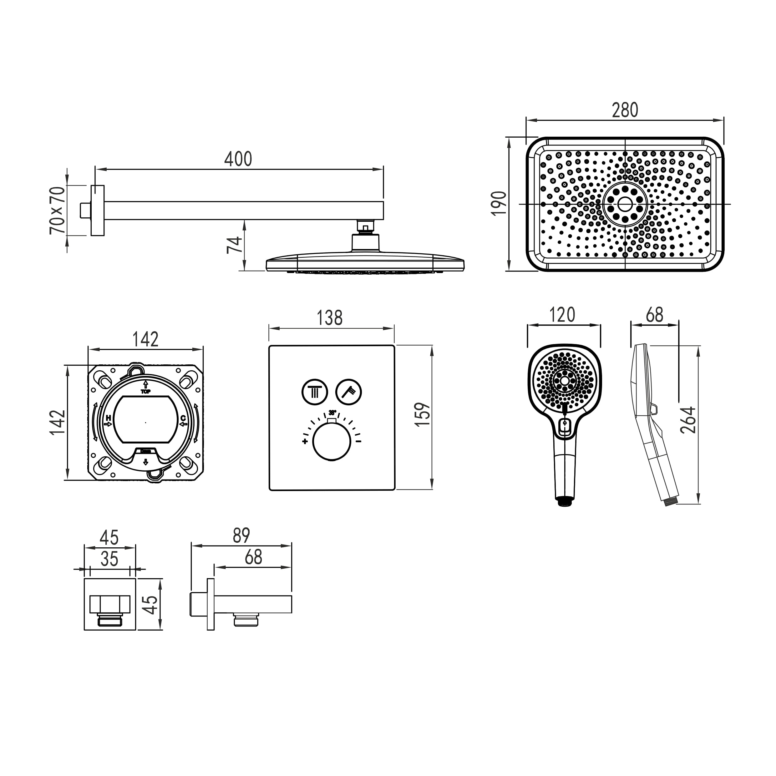 | Диаметр верхнего душа | 280×190 мм |