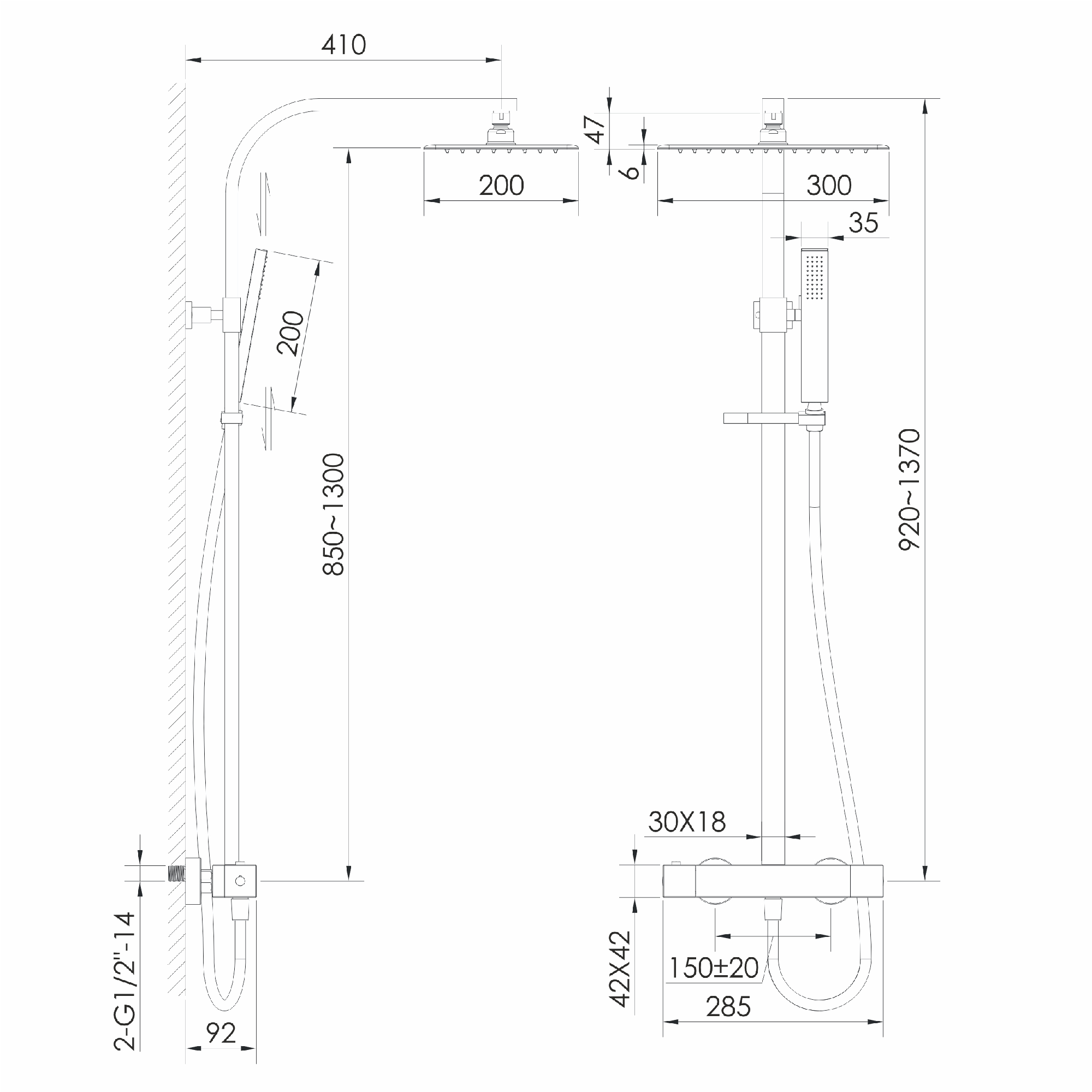 | Комплектация | Душевая система с термостатом, Шланг, Ручная лейка |