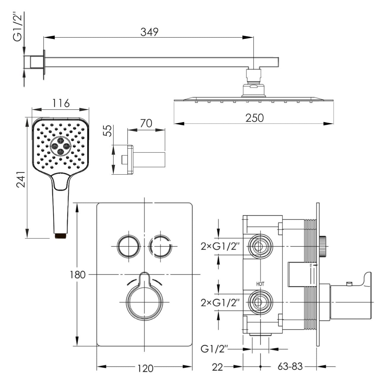 | Длина кронштейна для верхнего душа, мм | 349 |