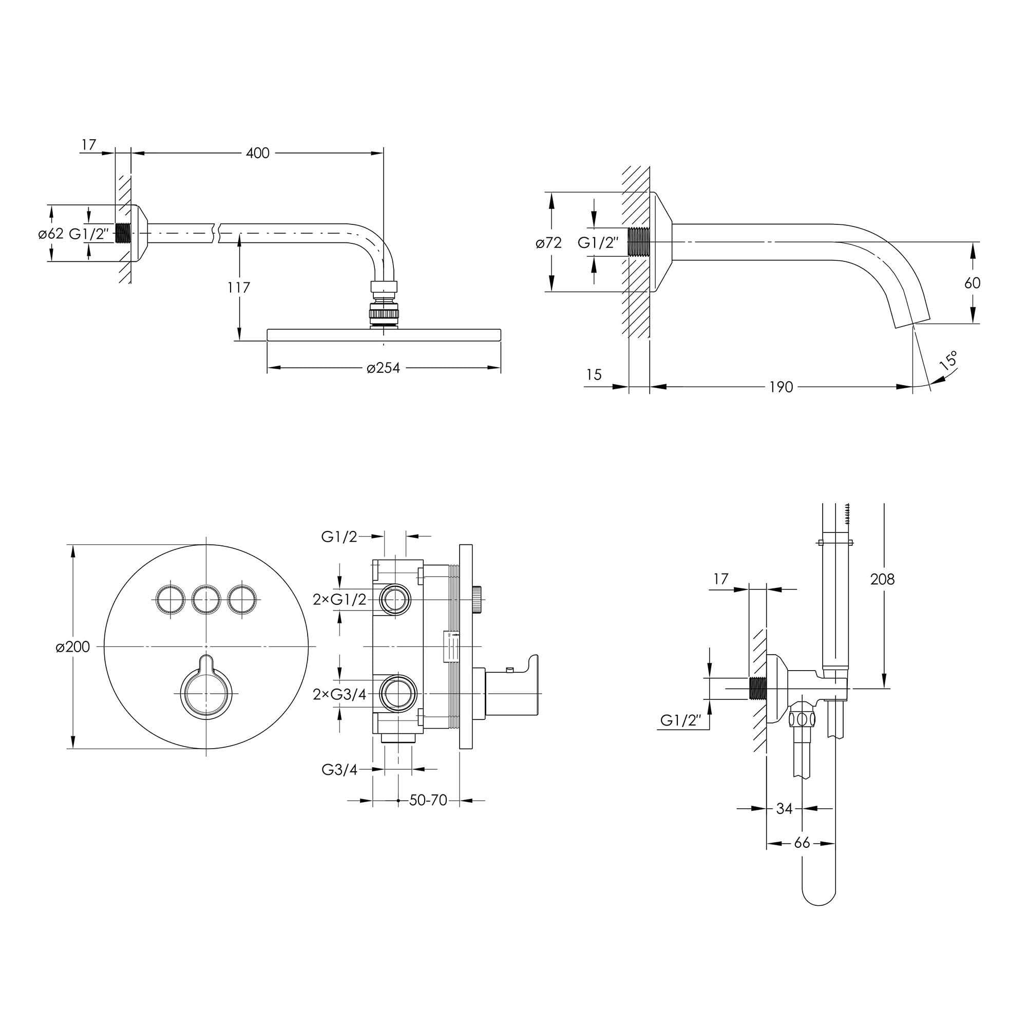 | Комплектация | Смеситель скрытого монтажа, Верхний душ с кронштейном, Душевой гарнитур, Стеновое подсоединение, Излив |