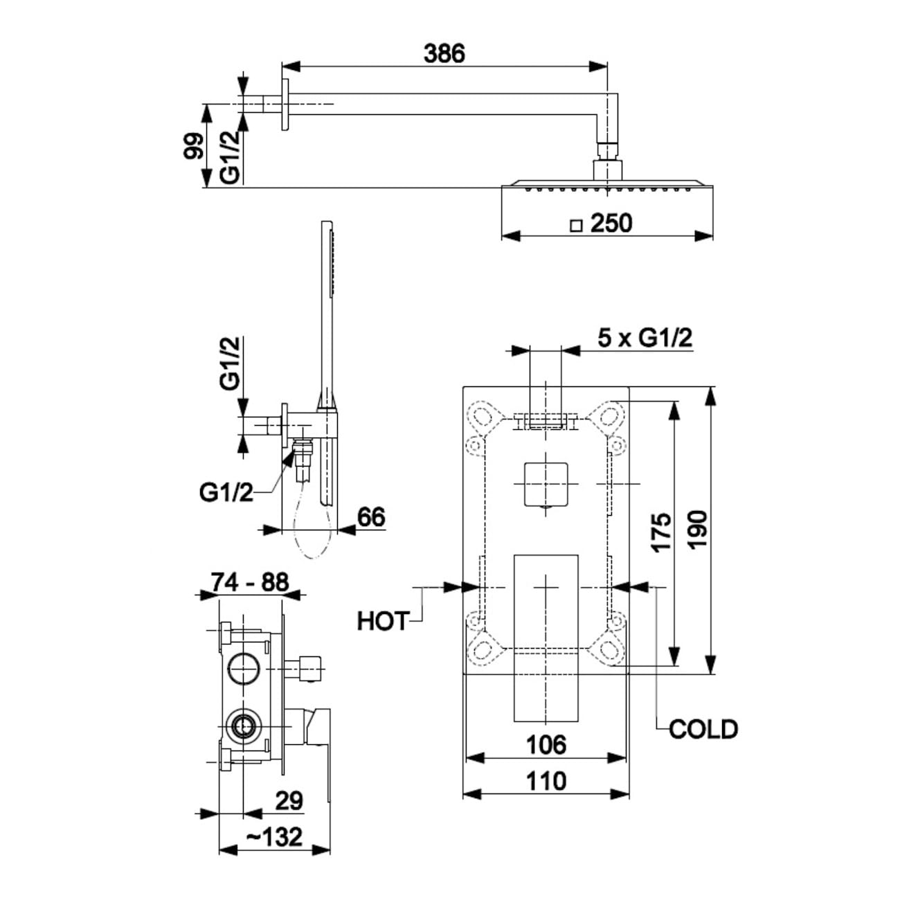 | Форма верхнего душа | Квадратная |
