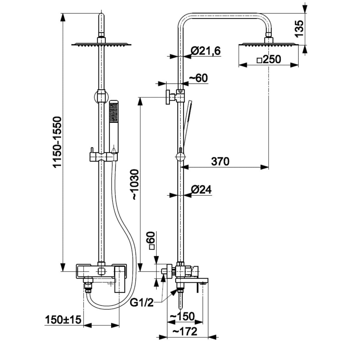 | Форма верхнего душа | Квадратная |