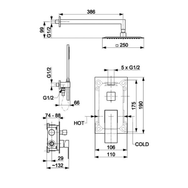 Душевая система KFA Armatura Logon скрытого монтажа, латунь, черная матовая (5139-501-81)