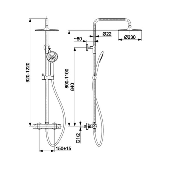 Особенности душевой системы | С регулировкой штанги, С термостатом |
