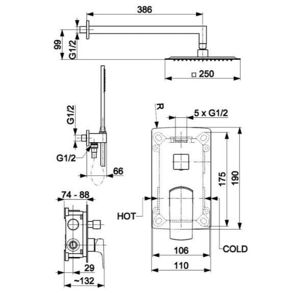 Душевая система KFA Armatura Mokait скрытого монтажа, латунь, черная матовая (5539-511-81)